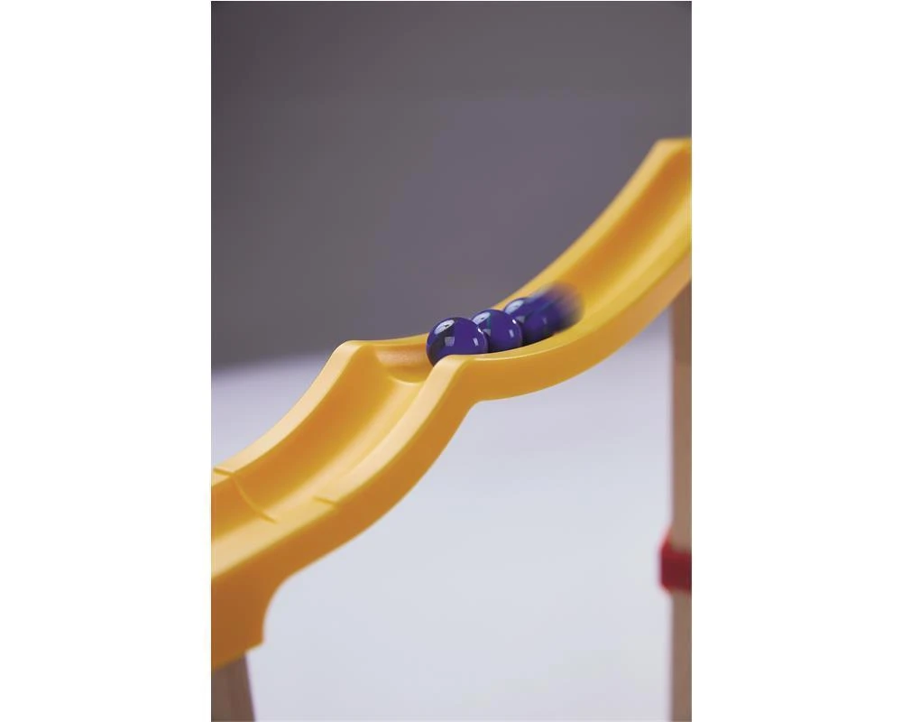 für spannende physikalische Experimente mit Geschwindigkeit und Kraft: bei der Powerpulser-Bahn geben ankommende Murmeln den Impuls an die liegenden Murmeln weiter