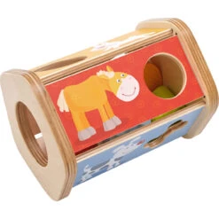 Der Hund mag den Knochen, aber was mag das Kaninchen? Mit der Sortierbox Steck-Snack haben Kinder doppelt Spaß: Sie lernen die lustigen Tiere und ihr Lieblingsfutter kennen und trainieren das Erkennen von Formen und die Feinmotorik.