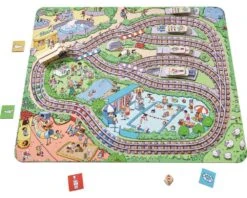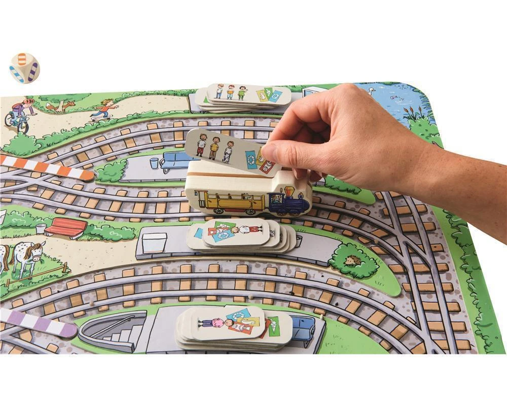 Tschu-tschu, da kommt die Eisenbahn! Auf den vier Bahnsteigen drängen sich viele Fahrgäste. Jetzt brauchen die Spieler etwas Glück beim Würfeln und Überblick beim Verstellen der Weichen. Doch was ist das? Die Fahrgäste haben ja Tickets für unterschiedliche Haltestellen. Wer mit der Eisenbahn die meisten Fahrgäste zu seiner eigenen Haltestelle bringen kann, ist der Gewinner.
