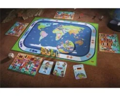 Einmal um die Welt! Auf dieser spannenden Reise lernen Kinder und Erwachsene die Länder der Welt, ihre Städte und Flaggen kennen. Bei dem Lernspiel von HABA versuchen 2-4 Spieler von 8-99 Jahren, so viele Länder wie möglich anhand ihrer Flagge, Hauptstadt oder geografischen Lage zu erraten. Wer richtig liegt, darf seine Reise fortsetzen und je nach Anzahl der benötigten Hinweiskarten mehrere Felder weiterrücken. Wer das Land nicht errät, bekommt zum Trost Jokerkarten. Die Spieler, die dank starkem Länderwissen und ein wenig Würfelglück am wenigsten Hinweise benötigen, umrunden die Welt am schnellsten und gewinnen das Spiel.