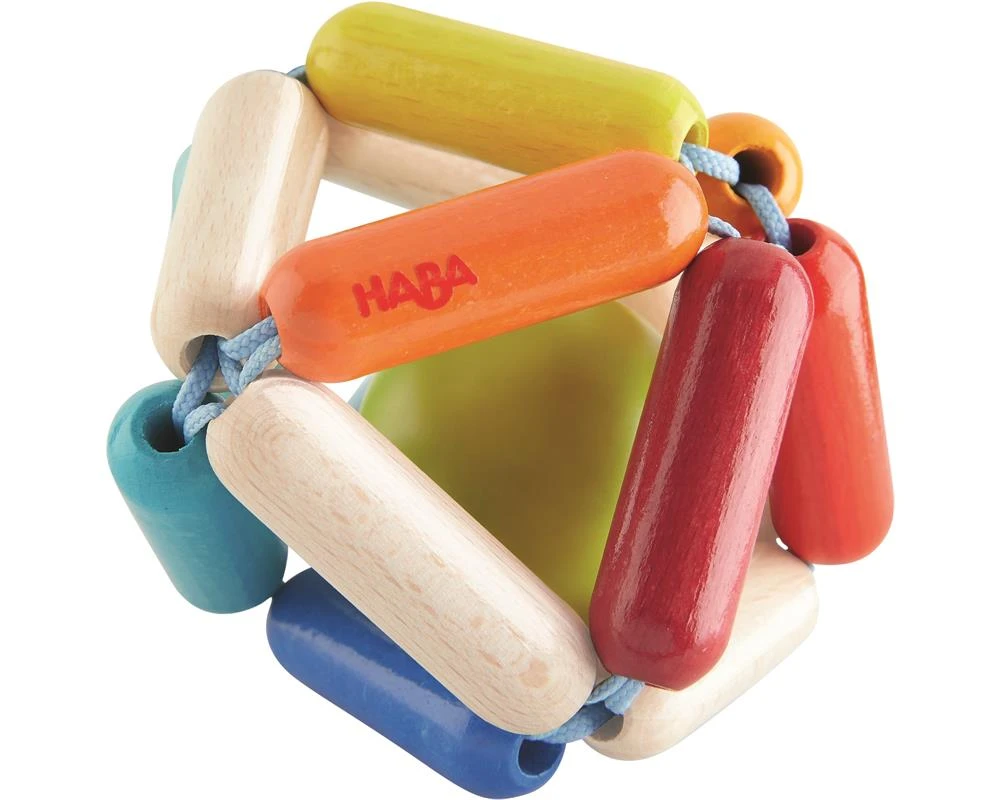 Beim farbigen HABA-Greifling Octavi gehen kleine Babyhände auf große Entdeckungstour. Die bunten Holzteile animieren zum Anschauen, Greifen, Hin- und Herwenden sowie Schütteln. Der Greifling stimuliert die Sinne und Wahrnehmung von Babys auf unterschiedliche Weise, und das von Geburt an. Wer mit dem Holzspielzeug spielt, erlebt tolle Dinge: So beginnt die Kugel im Innern des Greiflings bei Bewegung fröhlich zu klappern. Das sorgt gleich für gute Laune! Der kunterbunte Greifling Octavi von HABA steht für abwechslungsreichen Greifspaß und beschäftigt die Augen, Hände und Ohren kleiner Weltentdecker.