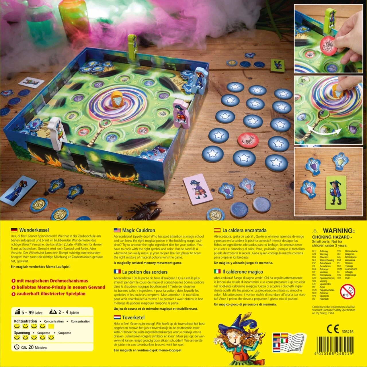 - Wunderkessel von HABA ist ein magisch-verdrehtes Memo-Laufspiel für 2-4 Spieler von 5-99 Jahren.