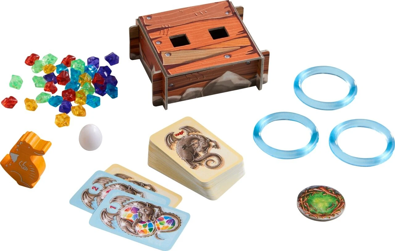 - Funkelschatz – Das Drachen-Ei von HABA ist ein drachenstarkes Sammelspiel für 2-4 Spier von 6-99 Jahren.