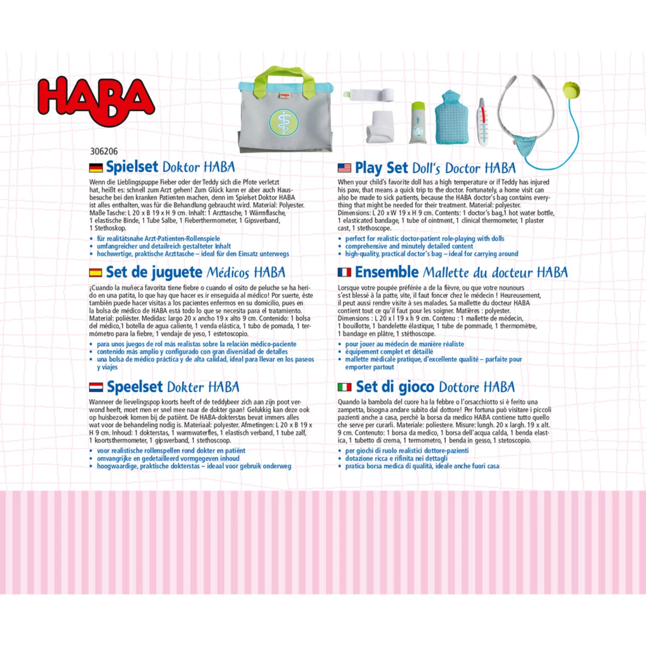 - das Spielset Doktor HABA enthält alles für die ärztliche Versorgung von Puppe, Teddy & Co.