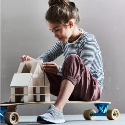 - das Bauen mit den Holzbausteinen fördert Fein-Motorik, Auge-Hand-Koordination, Konzentration sowie kommunikative, soziale Kompetenzen und Selbstvertrauen