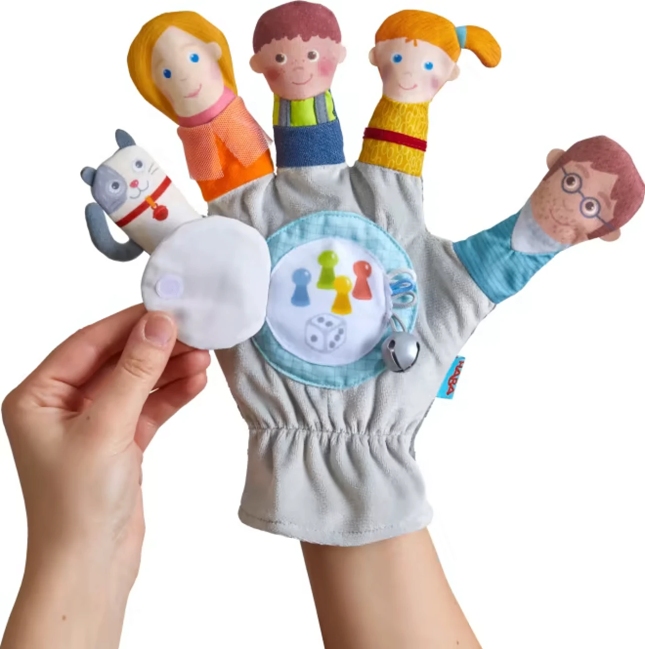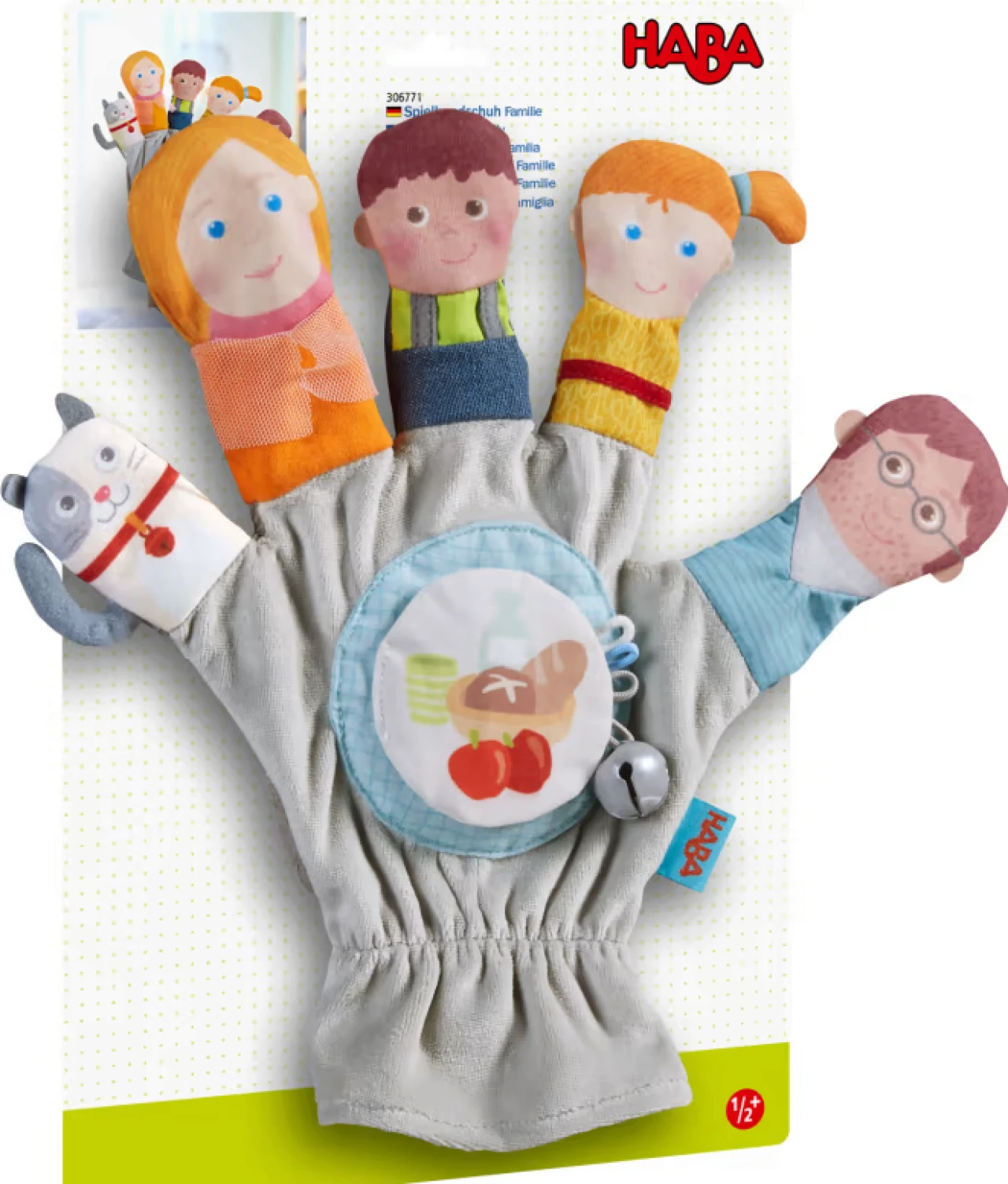 Fingerspiele machen Babys glücklich. Deshalb ist der HABA Spielhandschuh in ideales Spielzeug und ein toller Zeitvertreib für daheim und unterwegs. Jeder Finger stellt ein anderes Mitglied der Familie dar, welches zum Leben erweckt wird. In der Handschuhmitte kann nach Herzenslust geblättert und gestaunt werden, wenn das Glöckchen klingelt.