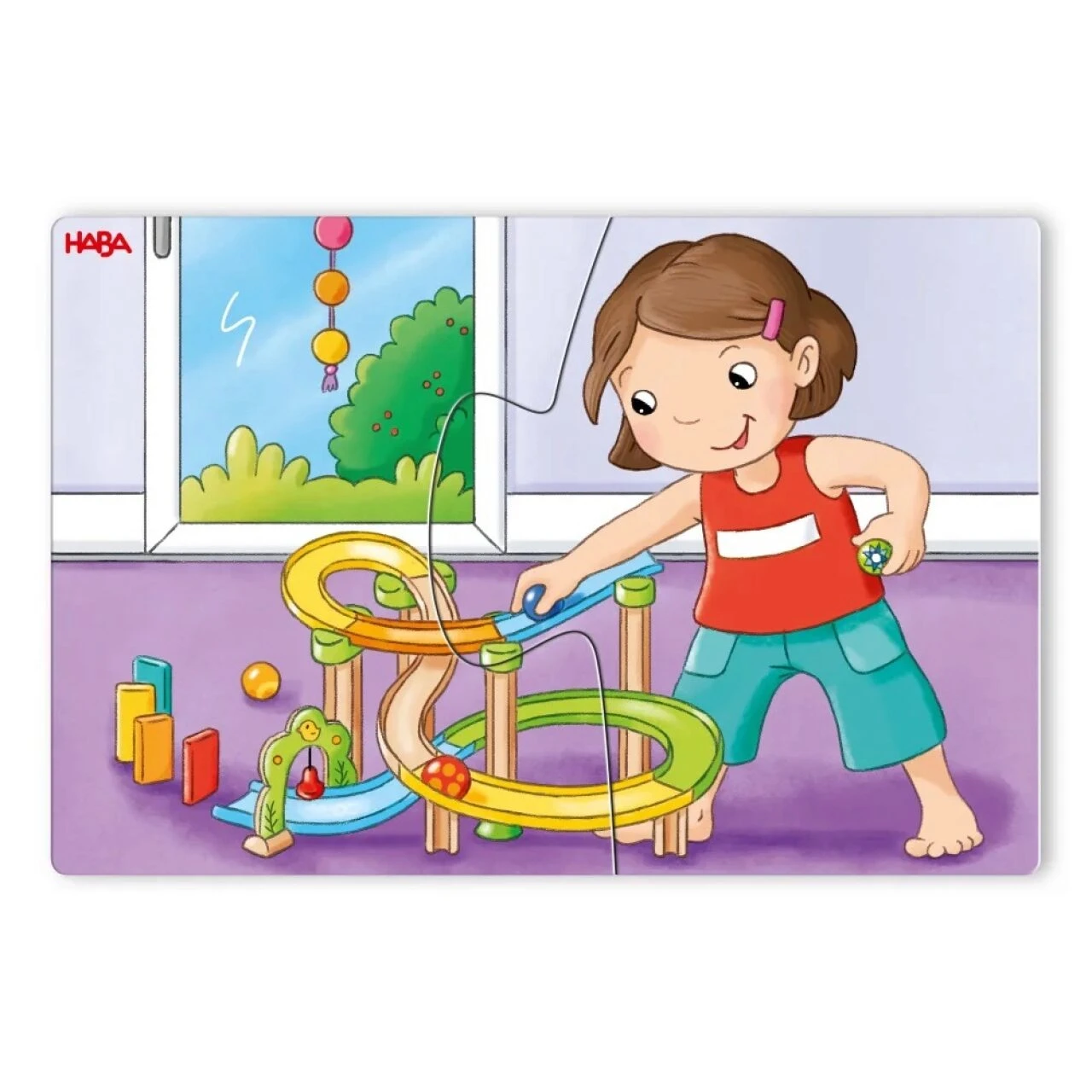 Das Zuordnen von Farben und Formen lernen Kinder ab 2 spielerisch mit den 10 Puzzles von HABA. Niedliche Motive und intensive Farben animieren kleine Kinder dazu, mit ihren Händen die großen Puzzleteile zu greifen und zu lustigen Spielzeugmotiven zusammenzusetzen.