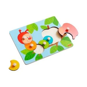 Mit diesem Greifpuzzle von HABA können kleine Puzzler die beliebte Raupe Mina auch mit wenig Übung selbstständig zusammensetzen. ab 12 Monaten 1 Puzzlebrett, 6 Puzzleteile Greifpuzzle aus Holz Puzzleteile mit praktischen Knöpfen Die großen Teile des Holzpuzzles verfügen über große, gut zu greifende Knöpfe. So lassen sie sich noch einfacher in die vorgesehenen Aussparungen einfügen. Die bunten Farben und deutlichen Formen erhöhen der Wiedererkennungswert und damit den Spielspaß. Ideal als Erstlingspuzzle geeignet, trainiert das Greifpuzzle Feinmotorik und Koordination.