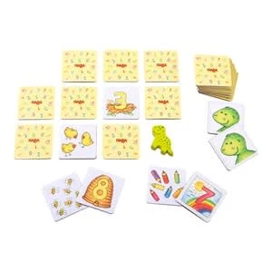 Wer kann dem Zahlendino beim Zählen helfen? Bei dem dinostarken Zahlen- und Memospiel von Haba können bis zu vier Kinder spielerisch den Zahlenraum von 1 bis 10 entdecken. ab 3 Jahren 1-4 Spieler Zahlendino aus Holz, 25 Memo-Plättchen aus Pappe und 1 Spielanleitung Bei dem spannenden Lernspiel muss zu jeder Karte mit einer Ziffer eine Karte mit der passenden Menge gefunden werden. So lernen bis zu vier Kids im Alter von drei bis acht Jahren nicht nur das Lesen der Zahlen, sondern auch das Erkennen von Mengen. Die Bilder auf den Karten helfen dabei: Die abgebildeten Symbole auf den jeweiligen Karten gehören immer zusammen. Und das Beste: Wer den lustigen Zahlendino am Schluss hat, der gewinnt das Spiel. Im Lieferumfang sind der Zahlendino, 25 Memo-Plättchen und die Spielanleitung enthalten. Praktisch: Es ist eine Spielvariante für ein Kind enthalten.