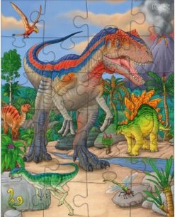 Ganz schön gefährlich sehen sie aus, die riesigen Dinosaurier, die einst die Erde unsicher machten. Doch echte Dino-Fans schreckt das nicht. Sie lieben die imposanten Urzeittiere mit dem feurigen Blick, den spitzen Zähnen, den Panzern, Schuppen oder Flügeln. Mit den drei HABA-Puzzles aus je 24 stabilen Kartonteilen kommen kleine Saurier-Kenner voll auf ihre Kosten. Und wenn fertig gepuzzelt ist, bieten die farbstarken und detailreichen Motive jede Menge Spannendes zu entdecken.